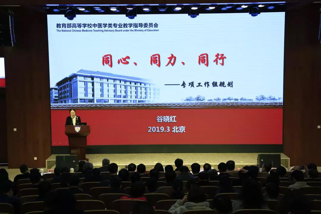 中医教指委主任委员、北京中医药大学党委书记谷晓红对各专项工作组的职责与2019年工作计划进行了部署。她表示,成立专项工作组,旨在打造具有特色的中医人才培养共同体,对中医学高等教育进行宏观指导,推动中医学高等教育教学改革创新,全面提高中医人才培养质量,引导中医学高等教育健康、科学、规范、可持续发展。