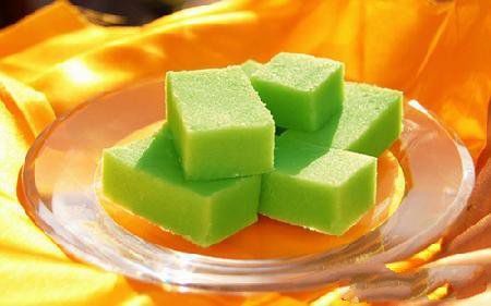 制法:将乌梅用沸水浸泡3分钟左右,取出切成小丁或片。生地切细,与乌梅拌匀。绿豆沙,乌梅、生地,揿结实,倍儿后把白糖撒在表面。把糕切成小方块。